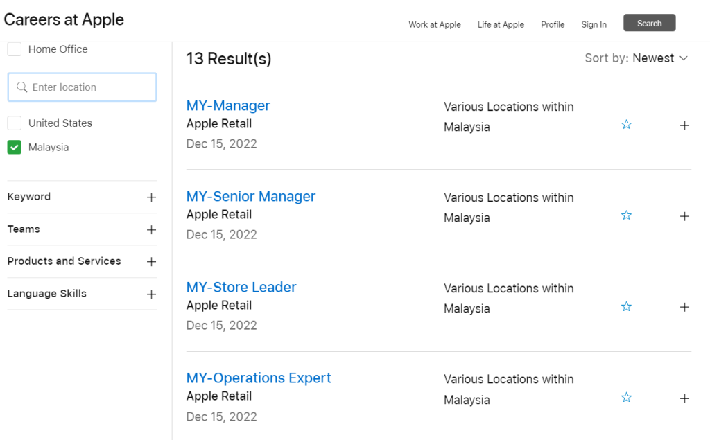 目前开放招聘的工作就包括了 Apple Retail Manager、Apple Retail Store Leader、Apple Retail Technical Specialist 等等,种种迹象都在显示苹果正在为他们在大马的第一家实体 Apple Store 做准备!
