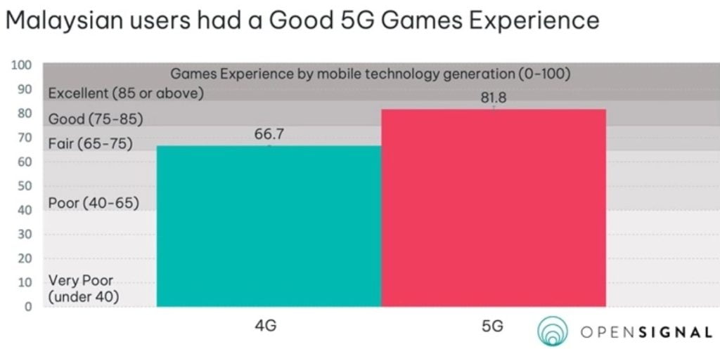根据Opensignal的分析报告指出,手机游戏和流媒体视频的4G使用率仅为一般,分数只有66.7分,反而是5G则获得了81.8分的分数,让大马用户在游戏体验伤都能感受到不错的快感。