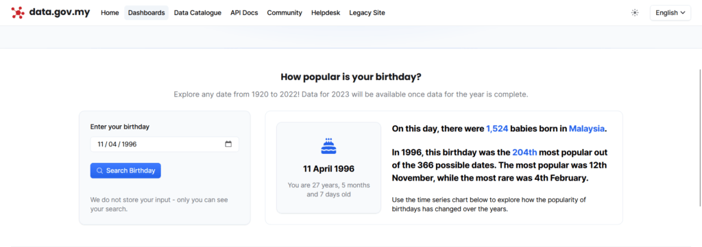 这个平台可以让你输入自己的生日日期之后,查看全马究竟有多少人和你同年同月同日生!不仅如此,这里还可以查看全马最畅销的车款是什么车款,还有你拥有的哪款车,马来西亚一共有着多少辆哦!