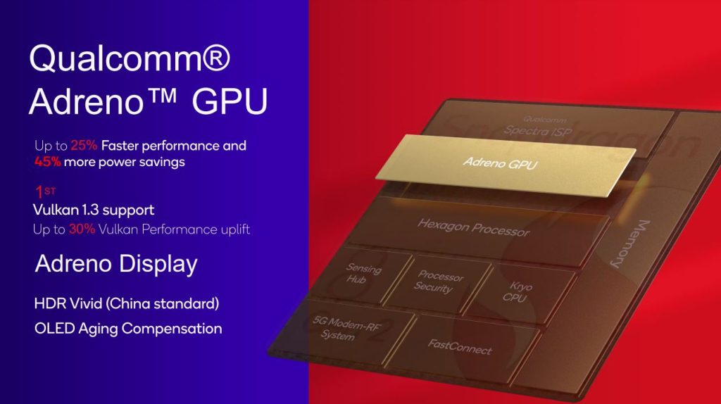 GPU方面,骁龙8 Gen 2将会采用全新的 Adreno GPU,并将可以支持 Vulkan 1.3 库、硬体光追(虽然没什么卵用),并预计将会提高性能表现高达25%,以及45%更节能!