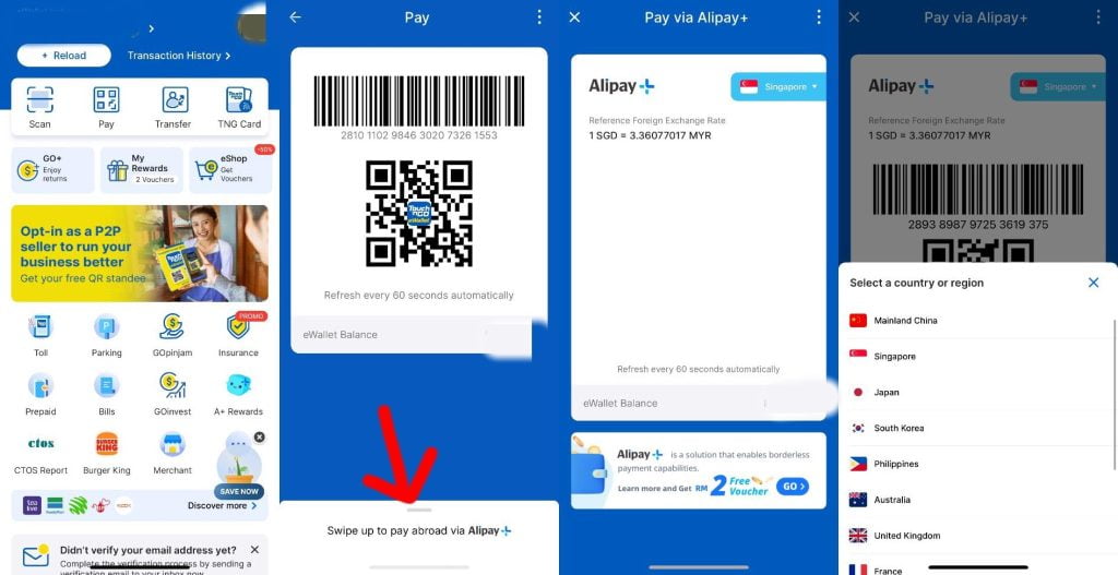 对于常常出国的朋友来说,这简直就是个好消息!Touch’n Go eWallet 引入了国外支付功能之后,就算出国前没有时间换钱,在国外旅行的时候也能直接打开 TNG eWallet 给钱了,但仅限特定国家而已。