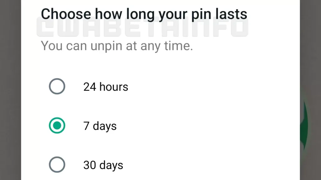 用户将可以提供三种不同的时间选择,分别为一天,一周或者一个月。目前这项功能仅在 WhatsApp Beta 测试中,并预计会在很快的时间就发布在正式版本上!